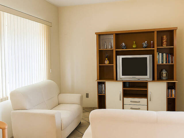 A casa principal possui dois quartos, sala bem ventilada, banheiro social, cozinha espaçosa e quintal amplo com ótima iluminação natural. Ideal para famílias que valorizam praticidade e conforto. A garagem comporta um veículo.